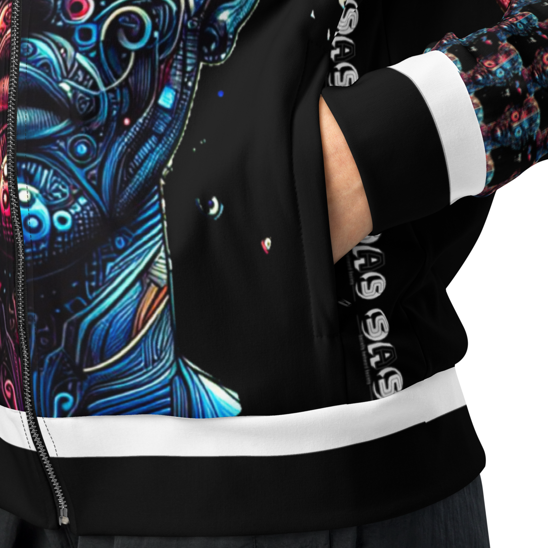 Step into the underground with this psychedelic art track jacket, engineered for the conscious warrior who commands the dance floor to the healing rhythm of 432Hz. This unisex statement piece fuses bohemian rebellion with raw techno aesthetics, creating a wearable gateway to elevated consciousness and unstoppable style.
